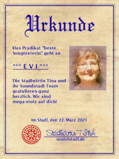 Hello Evi, Your lyrics have something truly special about them. They are not ordinary lines like those heard in many songs, but words filled with genuine meaning and inner depth. You can feel that every word is chosen consciously, lovingly, and with emotion. These words come from the heart—and that is exactly why they reach people’s hearts as well. With you, melody, emotion, and lyrics come together in a very natural way. They touch because one can find oneself in them. They allow the listener to feel along, open the heart, and offer moments that invite reflection. Your words stay with you. They linger, continue to accompany you, and leave behind a warm, loving feeling that one carries within for a long time.